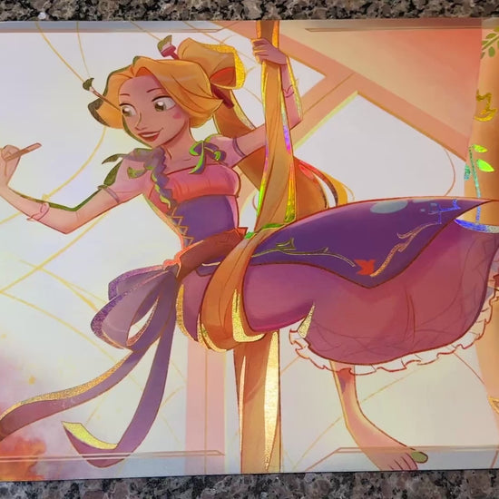 Officially Licensed Playmat Ravensburger/Disney Lorcana - Rapunzel - Altered by me with holographic gold foiling.