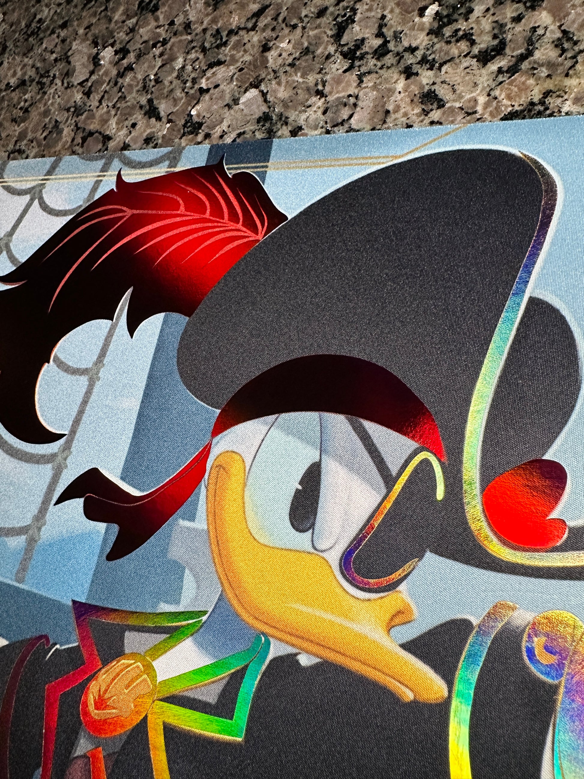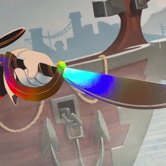 Officially Licensed Playmat Ravensburger/Disney Lorcana - Donald Duck Buccaneer - Altered by me, premium foiling with gold holo, w/ silver holo sword blade, and red metallic hat elements.