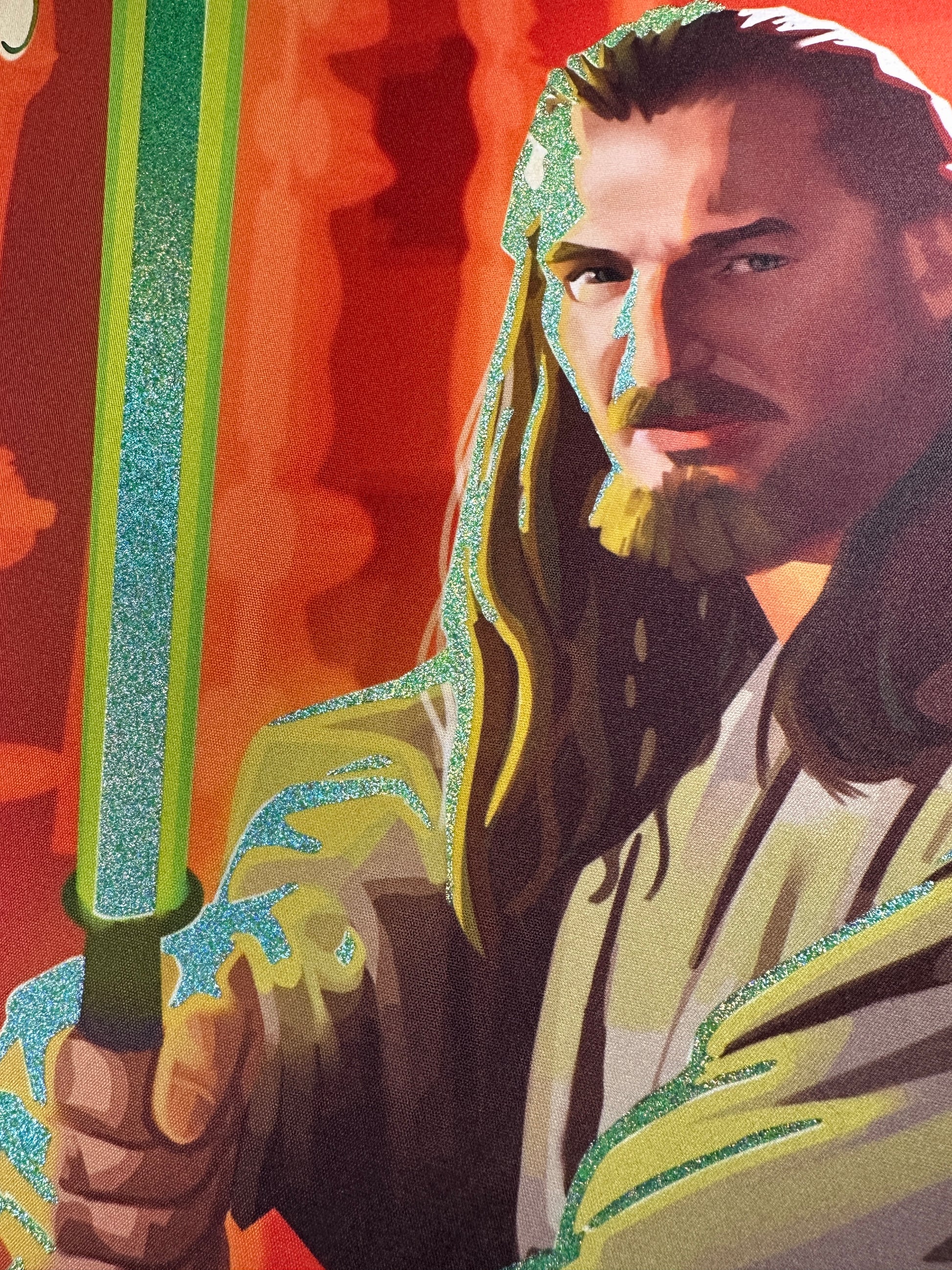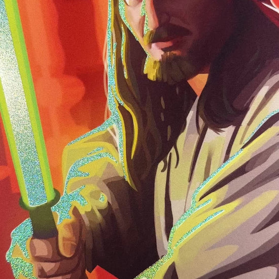 Gamegenic/Lucas Film Officially Licensed Playmat - Qui-Gon Jinn - Altered by me, premium foiling with green glimmer and silver & gold holographic accents.